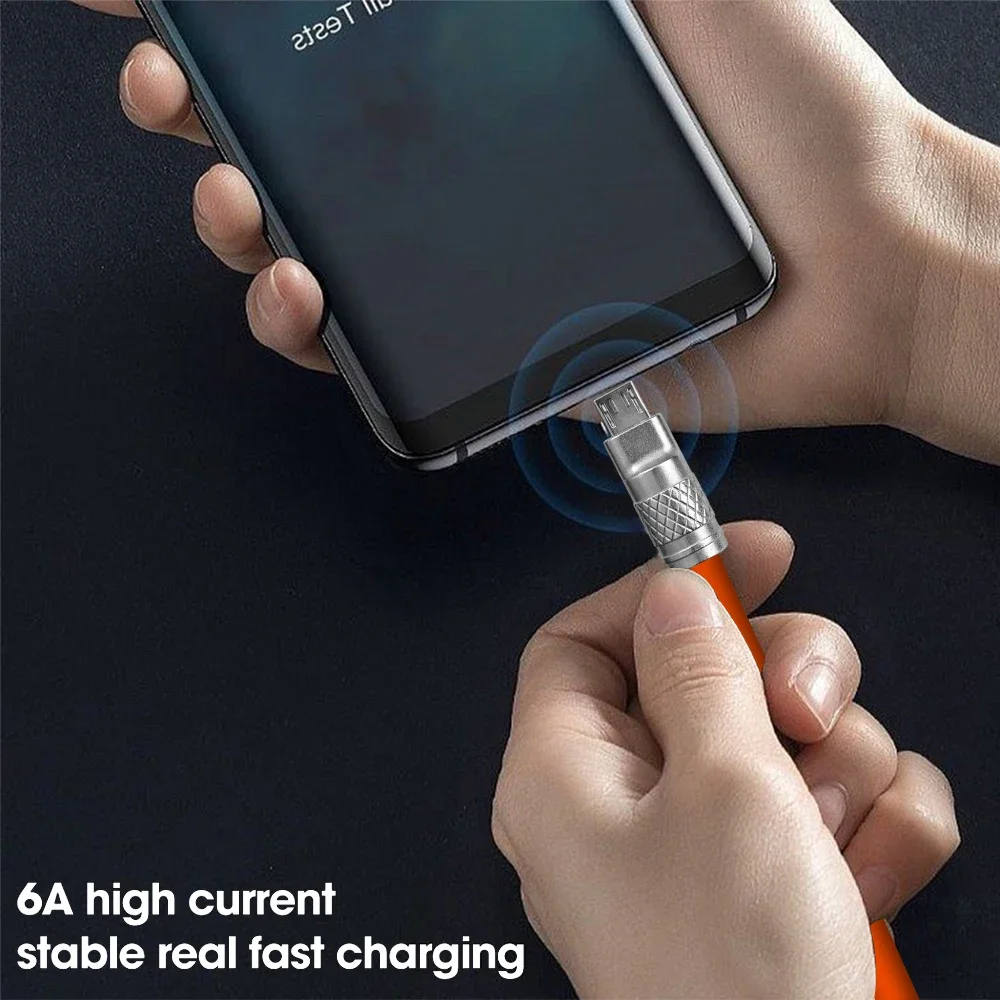 120W 6A Fast Charging Micro USB Cable Aluminum Alloy Thick Micro USB Cellphone Charger Wire Cord with Light for Android Laptop