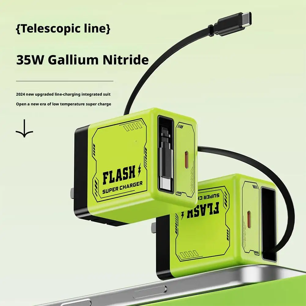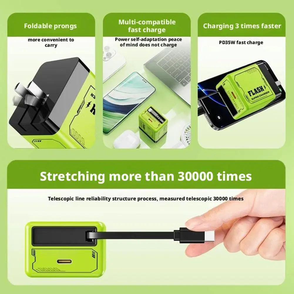 35W Retractable Wall Charger For Andoird Tablet With Type-C Cable Foldable Plug Fast Charging Mobile Phone Charger New G6K3