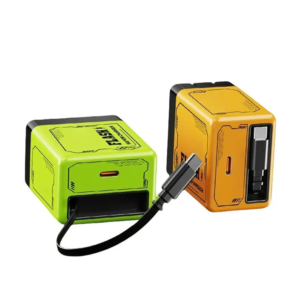 GaN Dual-Port Fast Charger with Retractable Cable (22.5W + 30W)