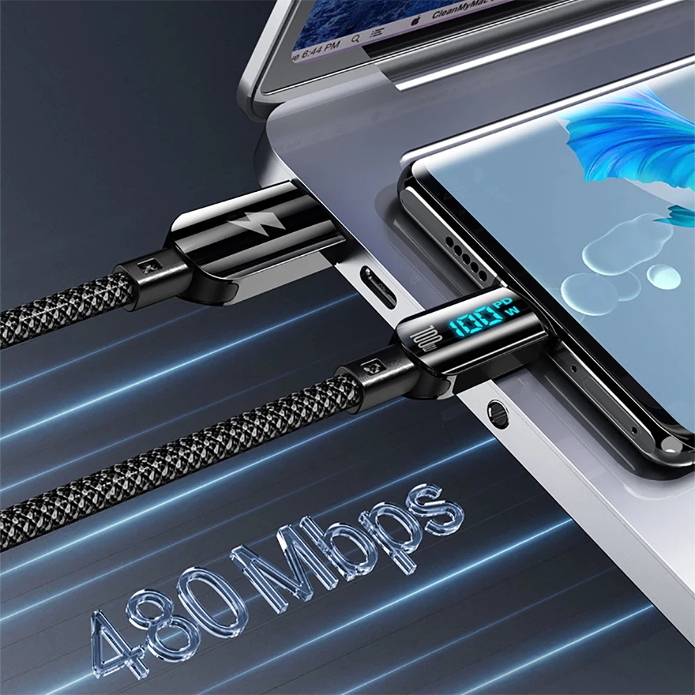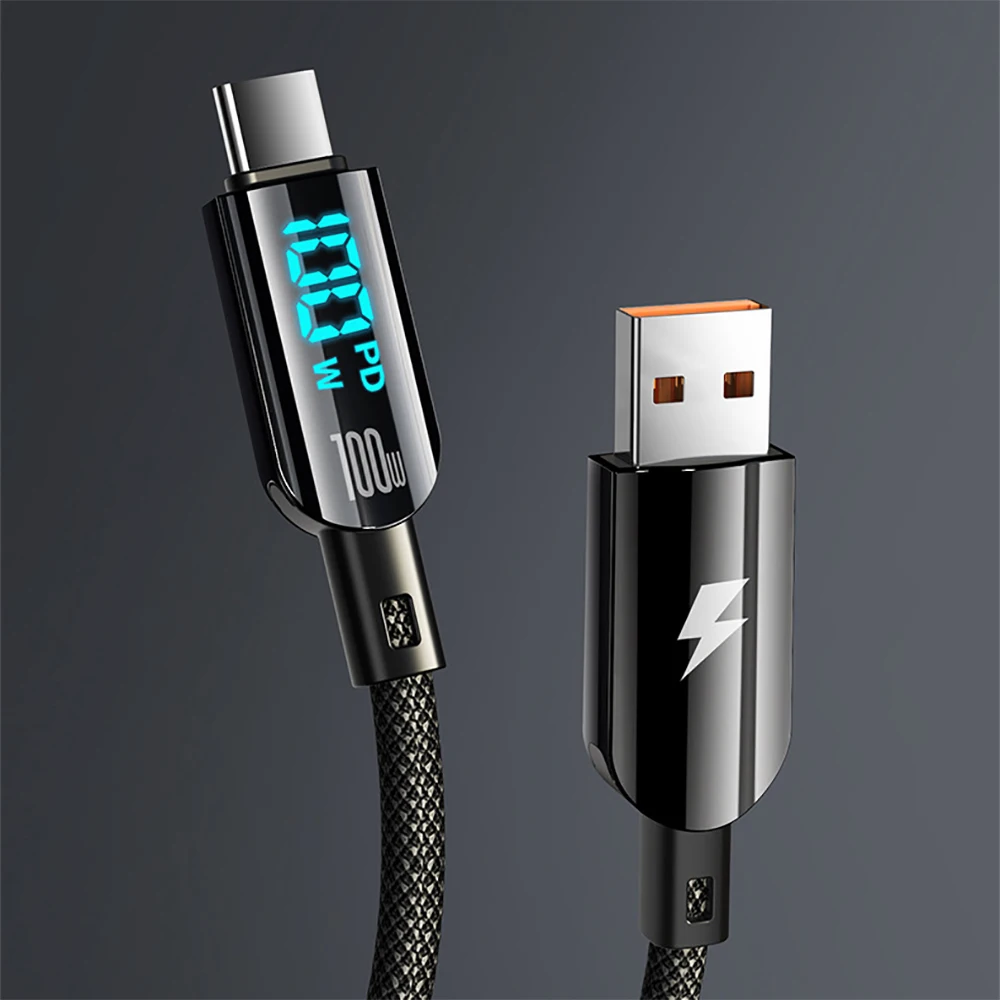 AC 100W Quick Charging USB C Data Cable Digital Display USB To Type C High-speed Phone Charger Cable for Samsung Xiaomi Huawei